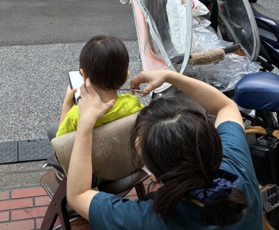 掃除しやすいように玄関先で青空散髪しているんだけどベトナム感あるな。