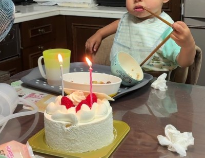 息子2が2歳に。ケーキのロウソクはまだ吹けないので(というか何なのかわかってない)、息子1に消してもらった。ケーキは食べない。息子1の時も同じ感じだったかなぁと日記を見返してみたり(23/10/8日記)。