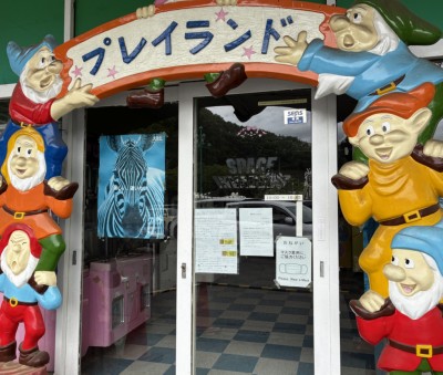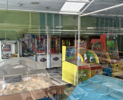 こちらも休業中だがゲームセンターの出で立ちもなかなか。木彫りの完全手作りなんだよね。「SPACE INVADERS」ってことは70年代からこのままなのか。